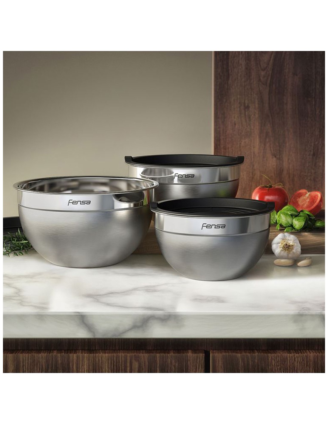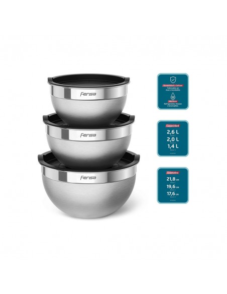 Set de 3 bowls de acero inoxidable