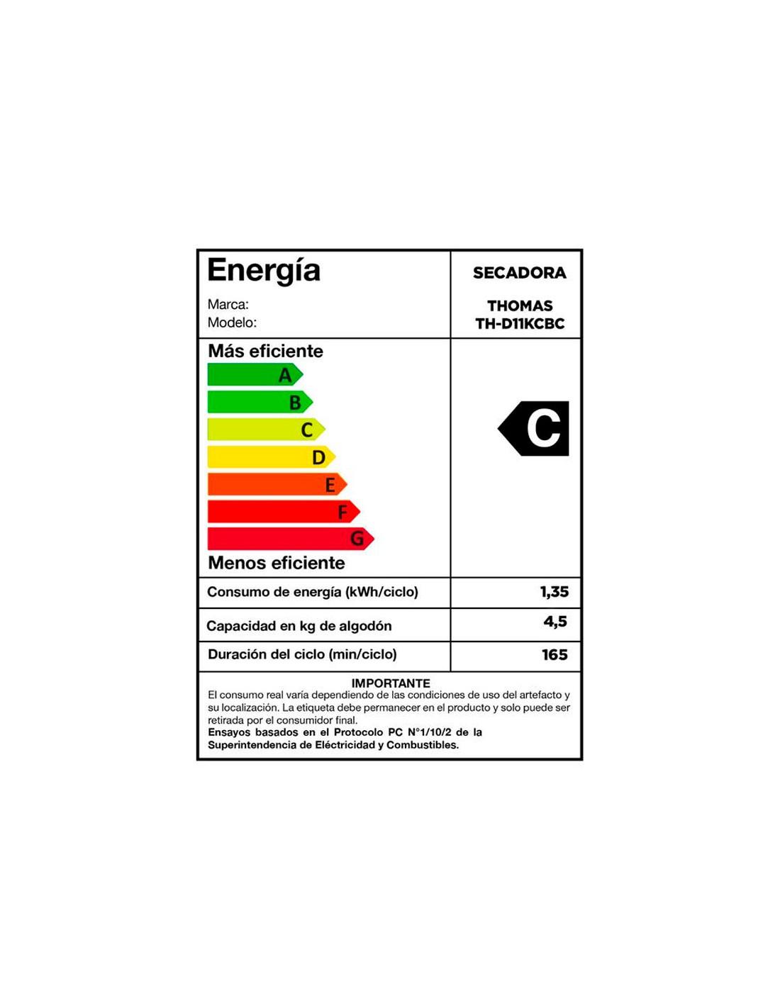 - Tipo de secado: Por condensación con bomba de calor