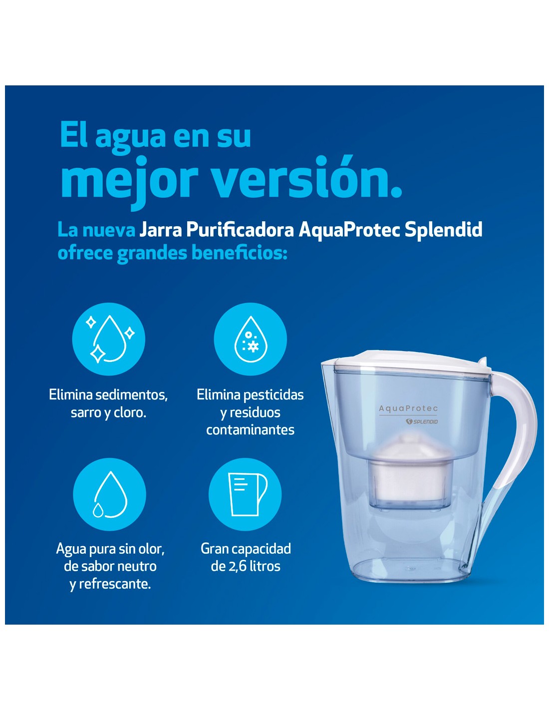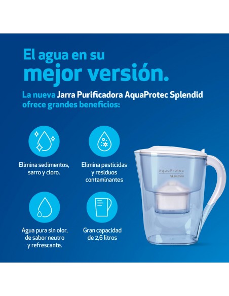 - Gran capacidad: 2,6 litros de agua purificada